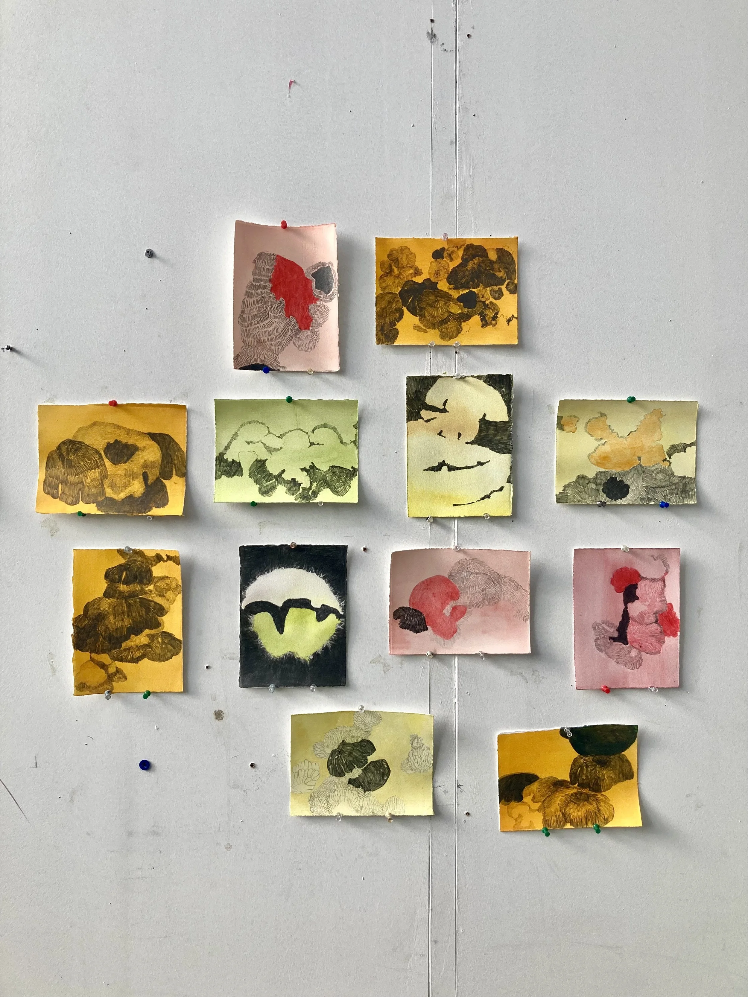 Lick Drawings, made in Cornwall at the same time as making the sculpture Lick - a commission for the exhibition Second Nature at Tremenheere Sculpture Gardens, 2024