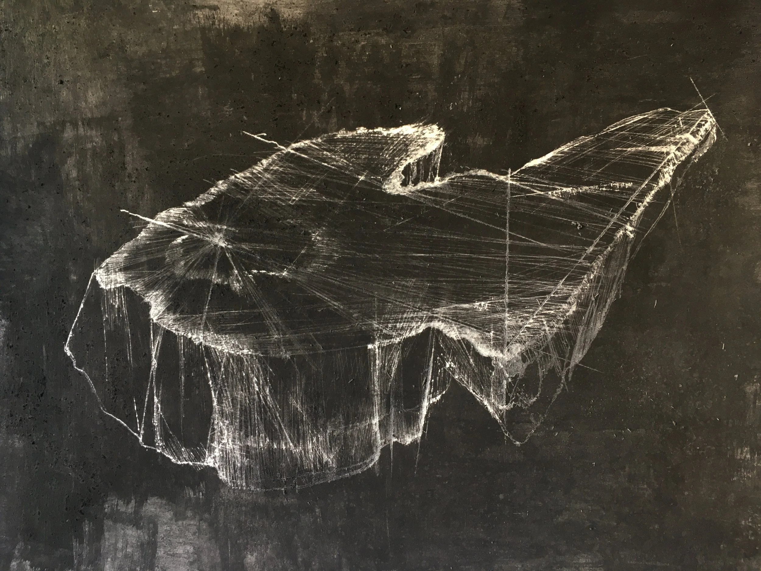 Nunhead 2, 2020, Dremel etched drawing on charcoal-inked paper, 56 x 76cm
