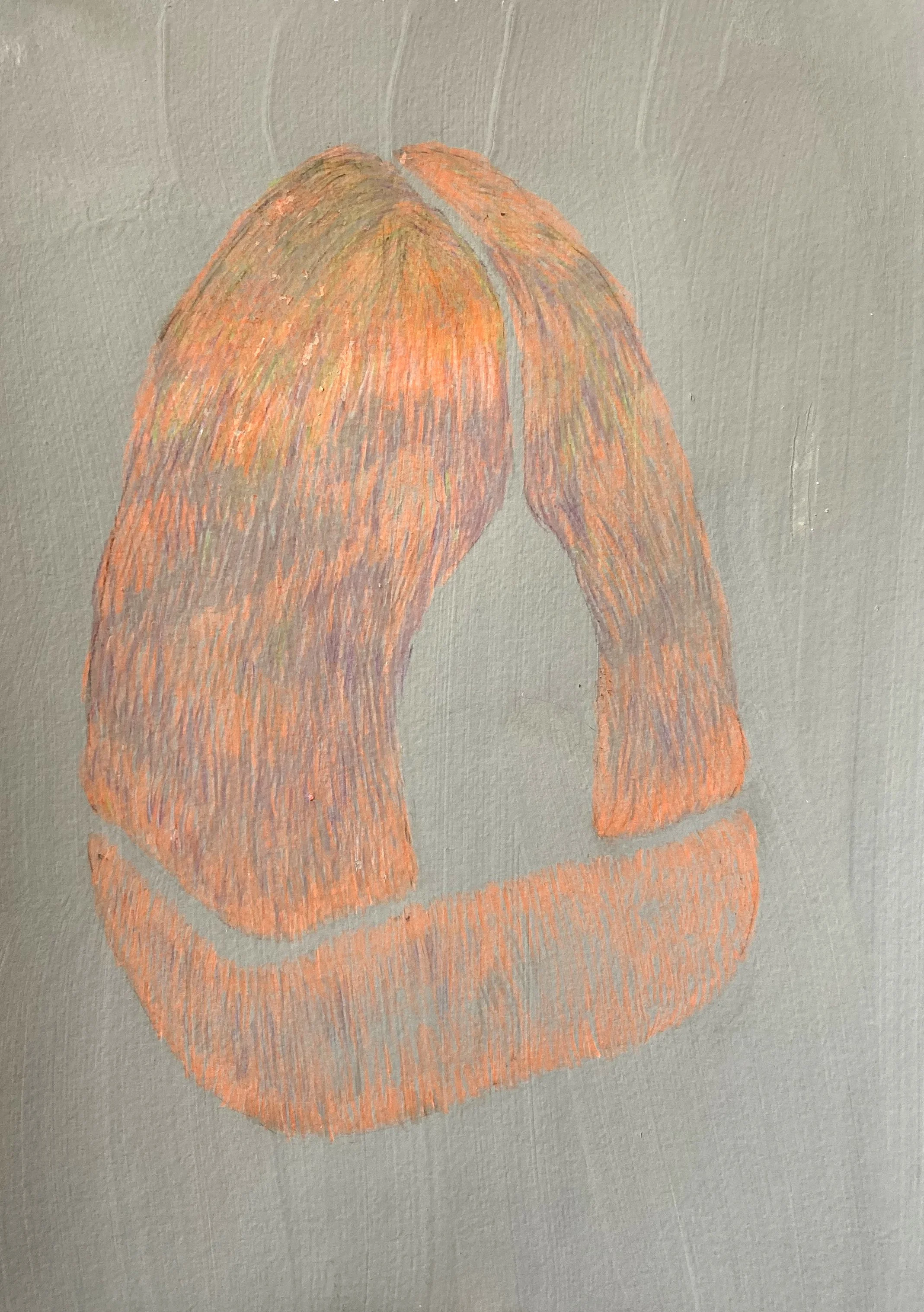 Hunch, pastel, graphite, pen on paper, 28 x 21cm, 2025